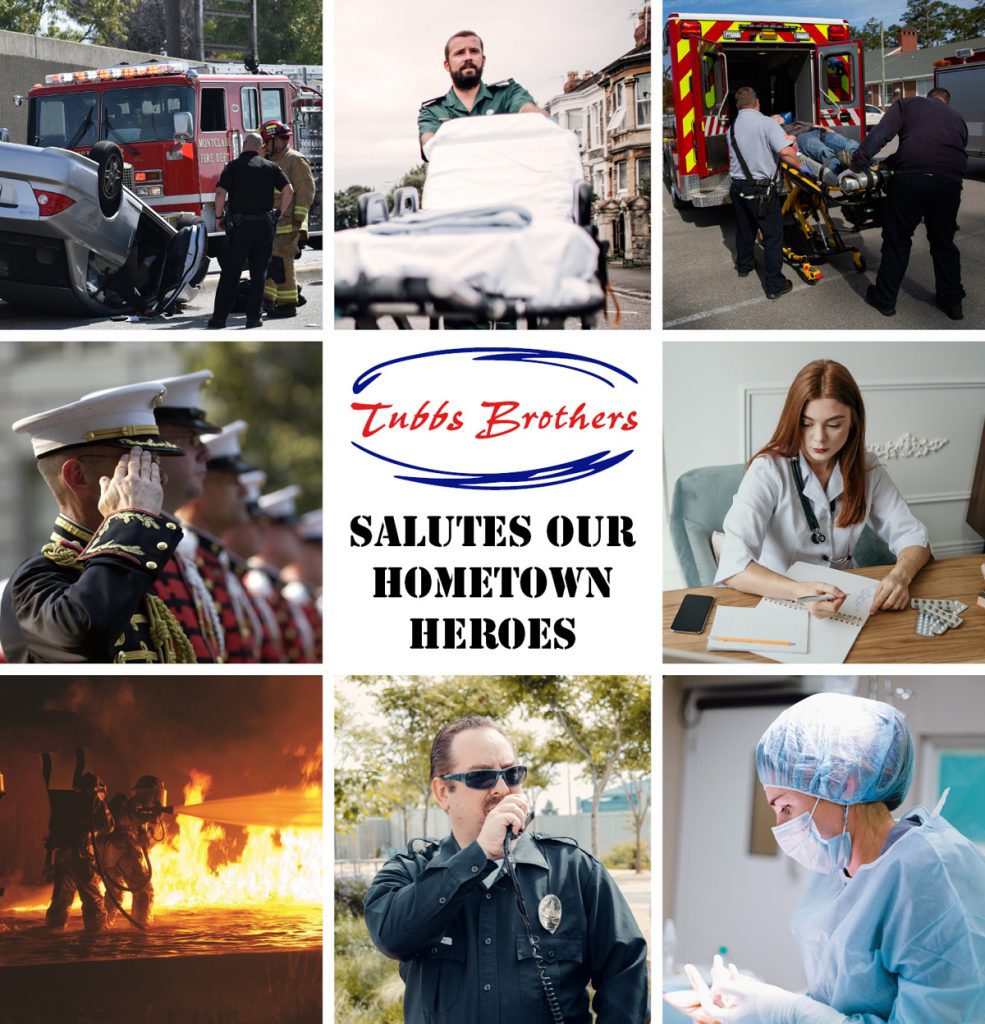 Tubbs Brothers commemorates our hard working Hometown Heroes, and thank them across the spectrum for their dedication and service to our community. They unselfishly put their lives on the line for others, all in the name of service to their fellow man. We deeply appreciate their kindness and the value they add to our community.